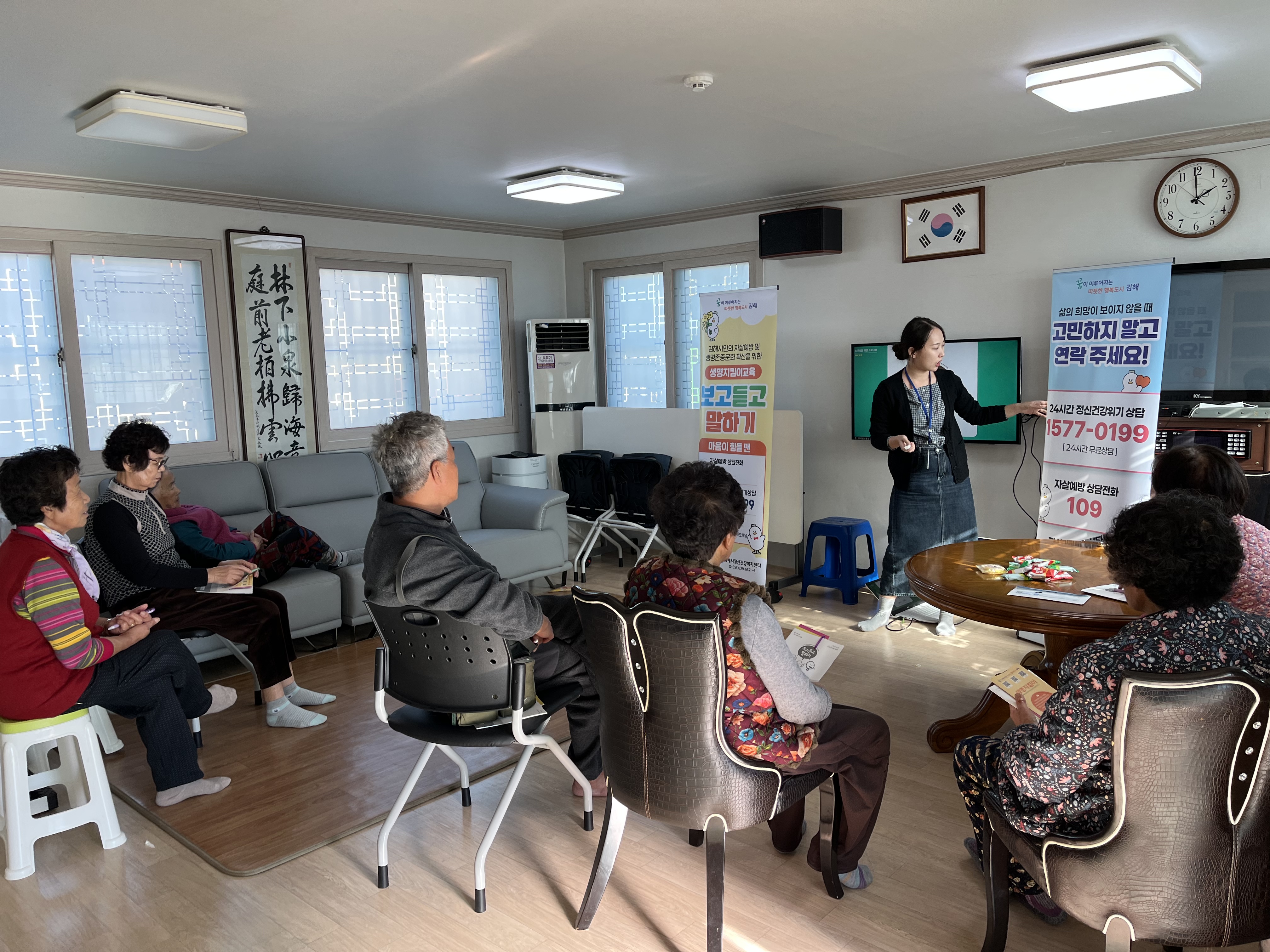 25.10.28 장유3동 수남경로당 … 김해시정신건강복지센터에서는10월 28일, 장유3동 수남경로당 이용 어르신들을 대상으로 생명이어달리기 교육을 진행했습니다.이..