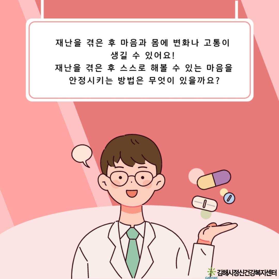 안정화기법알아보기! -재난 정신건강 재난을 겪은 후에는 마음과 몸의 변화나 고통이 생길 수 있습니다.이런 스트레스 반응은 누구나 겪을 수 있는 정상적인 반응입..