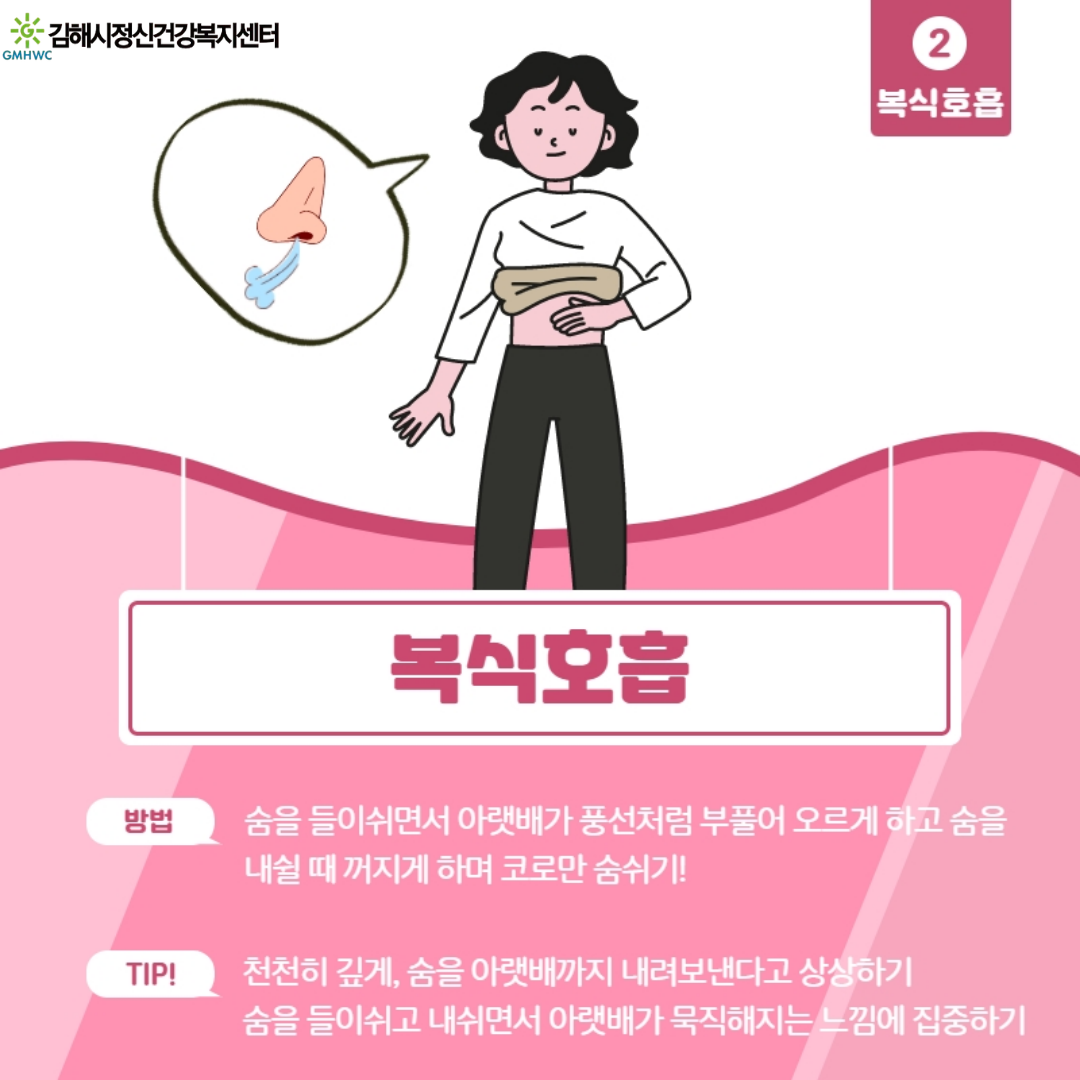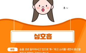 1번 심호흡  1️⃣ 심호흡방법: 숨을 코로 들이마시고 입으로 '후~'하고 소리를 내면서 풍선을 불듯이 천천히 끝까지 내쉬기❗..