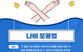 4번 나비포옹 4️⃣ 나비포옹방법- 두 팔을 가슴 위에서 교차시킨 상태를 만들어 줍니다양측 팔뚝에 양손을 두고 나비가 날개짓하듯 좌우를 ..