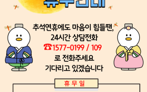 김해시정신건강복지센터 추석 연휴 휴무… 김해시정신건강복지센터는 10/3(금)~10/9(목) 추석 연휴기간동안 휴무입니다. 센터 이용에 불편 없으시길 바랍니다.추석..